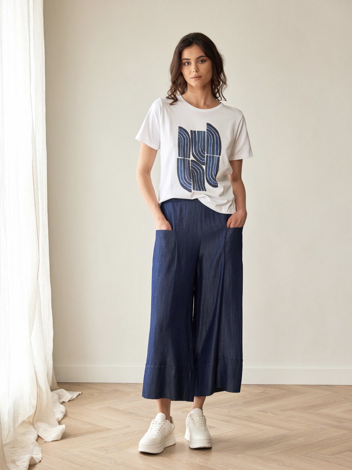 1/4 Circle Print T-Shirt S26229 White